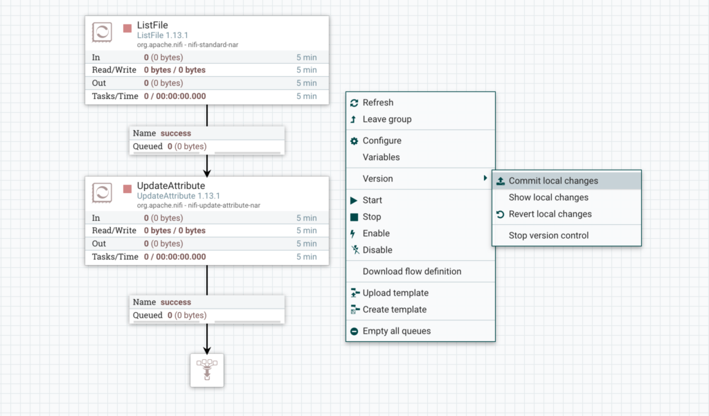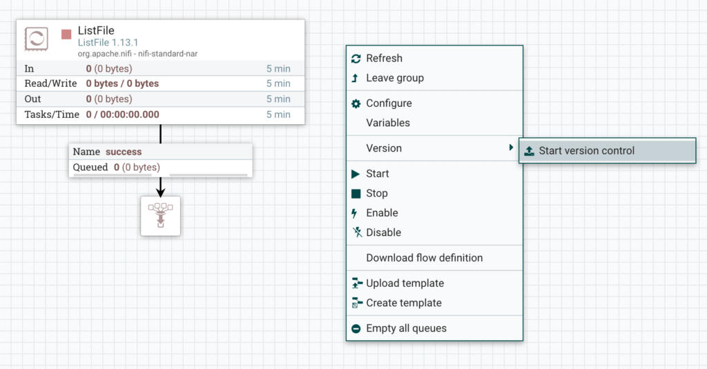 Let’s walk through the process. This assume you have a working NiFi and NiFi Registry already installed, I am using NiFi 1.13.1 and Registry 0.8.0. If you don’t, here’s some helpful links: