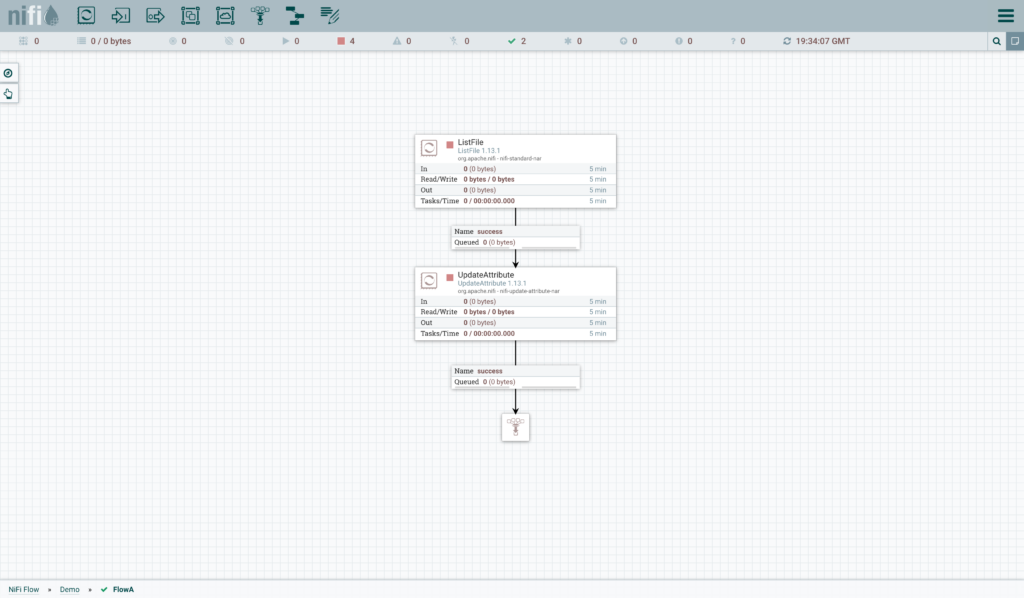 Now, back in Dev NiFi, make some changes to the flow. I have added an UpdateAttribute processor.