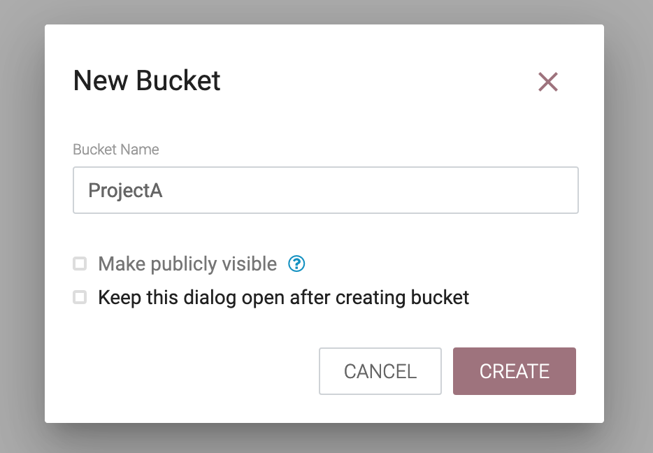We get a diaglogue box that lets us name the bucket - for example, we can name it after the project that will store its flows here.